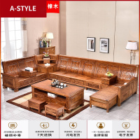 苏宁放心购新中式香樟木沙发组合花客厅家具仿古储物木沙发全实木转角贵妃A-STYLE家具