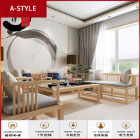 苏宁放心购新中式实木沙发组合原木色茶楼沙发民宿会所酒店禅意别墅家具定制A-STYLE家具