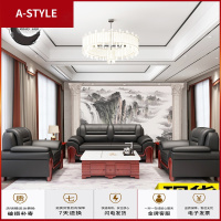 苏宁放心购办公沙发茶几简约 现代公司商务接待实木皮沙发办公室会客123组合A-STYLE家具