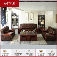 苏宁放心购新中式实木沙发组合现代中式简约轻奢皮艺沙发大户型别墅定制家具A-STYLE家具