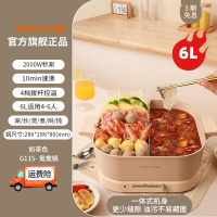 九阳电火锅家用多功能一体式电热锅炒菜锅秒涮电煮锅电煎锅6L学生 象牙白