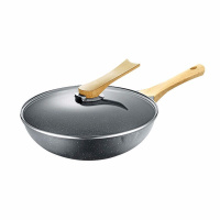 麦饭石不粘锅炒锅铁锅家用炒菜锅电磁炉煎炒两用平底锅煤气灶专用 30cm麦饭石炒锅/带盖(送木铲洁布)