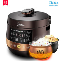 美的电压力锅家用5L正品智能全自动双胆高压饭煲 [尊贵版]深棕咖啡金
