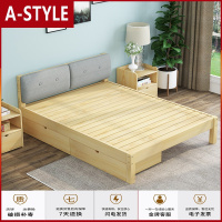 苏宁放心购实木床1.8米主卧床双人1.5米松木出租房床简易经济型榻榻米1.2m床A-STYLE家具