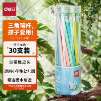 得力(deli) HC115-HB/2B书写铅笔 30支/桶马卡龙色三角笔杆带橡皮头绘画文具用品考试铅笔素描绘画学生用品