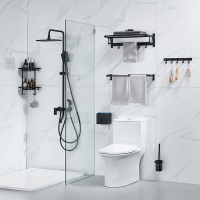 箭牌卫浴(ARROW)毛巾架 太空铝双层浴巾架 免打孔卫生间置物架 卫浴五金挂件套装 黑色挂件毛巾架三角篮挂衣钩浴室刷头