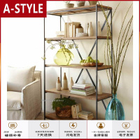 苏宁放心购美式实木书架钢木多层置物架复古陈列架客厅办公室落地置物架客厅卧室欧式田园A-STYLE家具