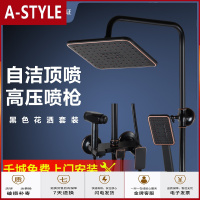 苏宁放心购黑色浴室淋浴花洒卫浴套装家用洗澡喷头淋浴器增压欧式淋浴柱A-STYLE