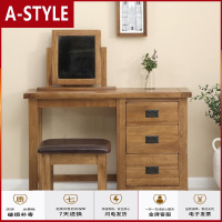 苏宁放心购全实木梳妆台黑胡桃色美式梳妆台乡村橡木化妆台化妆桌胡桃仿古色梳妆台+梳妆镜+梳妆凳A-STYLE家具