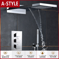 苏宁放心购全铜淋浴花洒套装隐藏瀑布花洒黑色恒温花洒暗装金色嵌入墙式A-STYLE