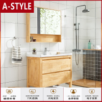苏宁放心购(定制)北欧实木浴室柜组合落地橡木卫浴柜卫生间洗漱台面盆洗脸洗手盆柜A-STYLE