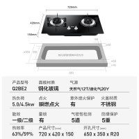 康宝(Canbo)5KW燃气灶天然气 煤气炉双灶台 嵌入式台式家用 防爆钢化玻璃大火力炉灶具 JZT-2QB520