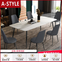 苏宁放心购轻奢餐桌现代简约小户型大理石饭桌北欧钢化玻璃家用岩板桌椅组合A-STYLE
