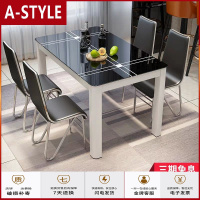 苏宁放心购餐桌现代简约钢化玻璃中小户型饭桌长方形洽谈家用烤漆餐桌椅组合A-STYLE家具
