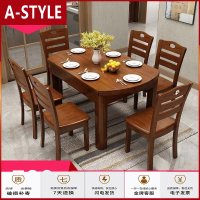 苏宁放心购实木餐桌椅组合现代简约折叠伸缩方圆两用餐桌家用吃饭桌子小户型A-STYLE家具