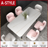 苏宁放心购大理石餐桌椅组合长方形北欧网红岩板现代简约家用小户型餐桌6人A-STYLE