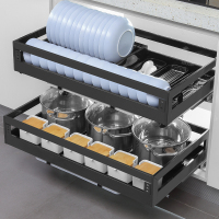 悍高橱柜拉篮双层抽屉式内置碗架304不锈钢厨房收纳调味篮碗碟篮