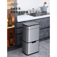 JAH智能感应分类垃圾桶家用厨房干湿分离不锈钢带盖双层大号容量筒高