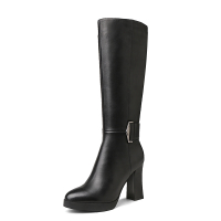 红蜻蜓女鞋正品真皮厚底高跟长筒靴百搭加绒保暖高筒棉靴