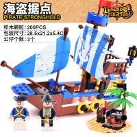 儿童积木加勒比海盗船系列男孩子6益智力拼装8儿童-9112海盗据点#200颗粒