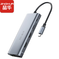 晶华 Type-C扩展坞USB-C转HDMI/VGA/千兆网口/分线器苹果雷电华为笔记本电脑带音频转换器十一合一N835