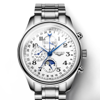 冠琴(GUANQIN)手表防水镂空全自动机械男表时尚多功能月相潮流商务休闲腕表