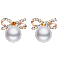 佰色传情(BRIR)纯银淡水珍珠耳钉女韩版时尚925银耳环蝴蝶结耳饰