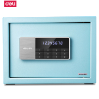 得力deli92619保险柜家用小型迷你保险箱办公指纹密码钥匙防盗保管箱床头柜 天蓝色/电子密码/钥匙