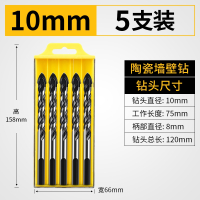 瓷砖钻头玻璃陶瓷混凝土水泥转头6mm8mm合金打孔套装手电钻三角钻 10mm一盒(五支装)