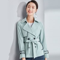 欧昵雪 春秋季女高腰系带双排扣修身短款风衣外套女长袖c