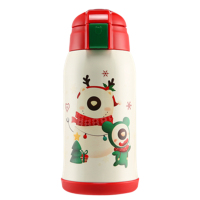 杯具熊 beddybear 母婴幼儿童 316不锈钢大容量两盖保温壶便携式背带宝宝水杯直饮吸管两用杯学饮杯 限量款-圣诞