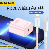 品胜苹果20W充电器套装(充电器(粉)+1米PD快充线(粉))PD快充头iPhone13/12/11充电插头数据线