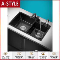 苏宁放心购黑色纳米水双厨房手工洗菜盆不锈钢家用超大号洗碗池A-STYLE