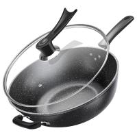 麦饭石不粘锅炒锅铁锅家用炒菜锅电磁炉煎炒两用平底锅煤气灶专用 [豪华款]34cm麦饭石炒锅/带盖(送木铲洁布+煎蛋器)