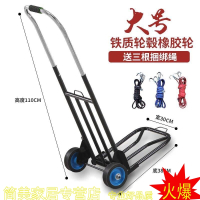 手拉车折叠便携行李车购物车买菜车拉货车载重王小拉车小推车法耐家用拖车家用 大号橡胶轮蓝色满焊+加厚款