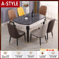 苏宁放心购岩板餐桌可伸缩小户型家用折叠北欧风格现代简约轻奢大理石组合椅A-STYLE