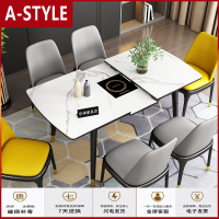 苏宁放心购岩板餐桌可伸缩小户型家用折叠北欧风格现代简约轻奢大理石组合椅A-STYLE