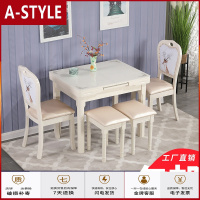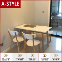 苏宁放心购小户型餐桌椅组合简约现代实木可伸缩家用钢化玻璃长方形电磁炉桌A-STYLE家具