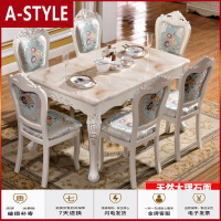 苏宁放心购欧式餐桌椅组合天然大理石现代简约长方形小户型6人简欧实木饭桌A-STYLE