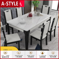 苏宁放心购大理石实木餐桌椅组合北欧简约长方形黑白色家用小户型电磁炉饭桌A-STYLE