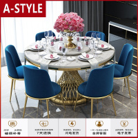 苏宁放心购轻奢圆形岩板餐桌后现代简约大理石面餐桌北欧不锈钢饭餐桌椅组合A-STYLE