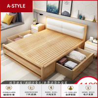 苏宁放心购北欧风实木床现代简约小户型1.8米1.5双人单人软包1.2高箱储物卧A-STYLE家具