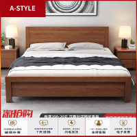 苏宁放心购北欧床简约风格胡桃木全实木床1.8米床主卧双人床1.5米经济小户型A-STYLE家具