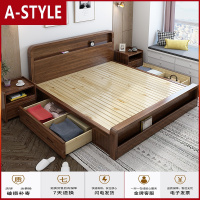 苏宁放心购北欧胡桃木实木床现代简约1.8米主卧双人1.5米高箱储物床轻奢家具A-STYLE