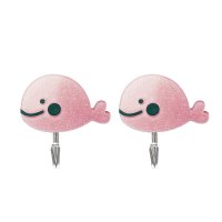 茶花强力粘胶卡通可爱墙壁粘钩墙上承重迷你宿舍钩子小挂钩家用勾[闪亮鲸鱼1枚入]