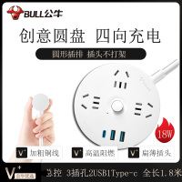 公牛插座R203U灰色-1.8米)圆形usb充电快充创意插排接线板多功能插板插排拖线家用圆盘学生宿舍床头插线板/插电板