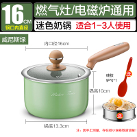 [16cm绿色加深+304蒸格]电磁炉燃气通用 苏泊尔奶锅不粘锅宝宝辅食锅加厚麦饭石泡面锅小煮锅婴儿煎煮一体
