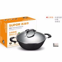 36CM(适合4~10人) 苏泊尔(SUPOR) 炒锅双耳炒锅铁锅深型平底无涂层铸铁炒锅燃气电磁炉通用锅具 加深加大炒锅