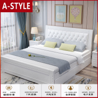 苏宁放心购床主卧室现代简约北欧式实木床1.5小户型储物婚床真皮床双人1.8米A-STYLE家具