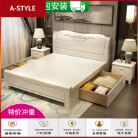 苏宁放心购实木床1.8米白色双人床主卧大床现代简约小户型1.5m高箱储物婚床A-STYLE家具